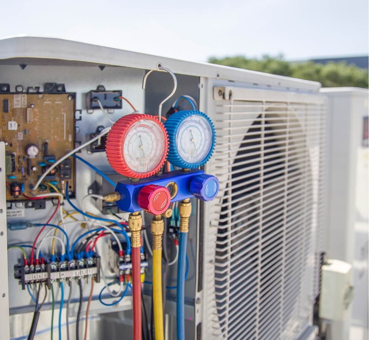 We perform routine tasks like filter changes and coil cleaning, with qualified technicians handling all technical diagnostics including pressure checks, temperature monitoring, and mechanical assessments.